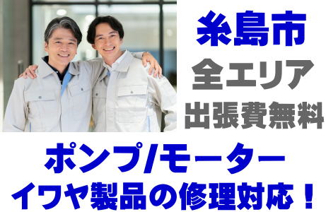 糸島市でIWAYA製品(井戸ポンプ、水中ポンプ)の故障修理はイワヤポンプ取り扱い店の当店が即日対応いたします!