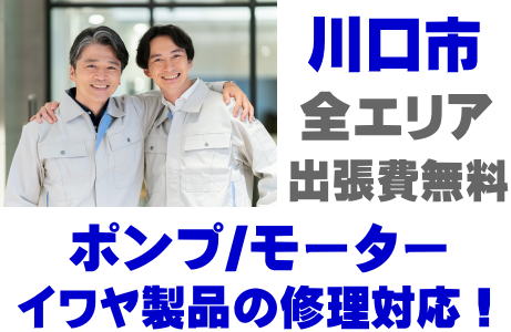 川口市でIWAYA製品(井戸ポンプ、水中ポンプ)の故障修理はイワヤポンプ取り扱い店の当店が即日対応いたします!