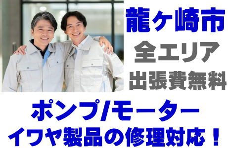 龍ヶ崎市でIWAYA製品(井戸ポンプ、水中ポンプ)の故障修理はイワヤポンプ取り扱い店の当店が即日対応いたします!