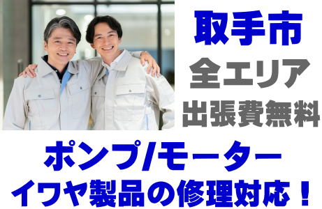 取手市でIWAYA製品(井戸ポンプ、水中ポンプ)の故障修理はイワヤポンプ取り扱い店の当店が即日対応いたします!